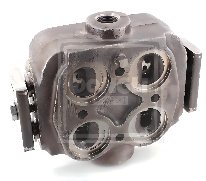 Valve Chamber Assembly for FMC Bean E04/R2020 series (SKU 1247235). ASTM A536 ductile iron casting with CNC machining and Ni-Cr overlay. HRC55 flow surface, 35MPa rating, 30% turbulence reduction - engineered for high-T/P slurry pumps.