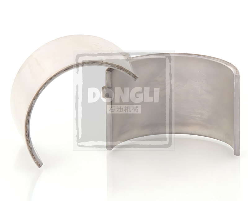Connecting Rod Bearing Pair (E04/R2020 Series), forged from GCr15 bearing steel with quenching & low-temperature tempering, Rockwell hardness HRC60-64. Compatible with FMC BEAN E04/R2020 mud pump power ends. API 7K compliant with 30% improved impact resistance, fatigue life up to 15,000 hours.