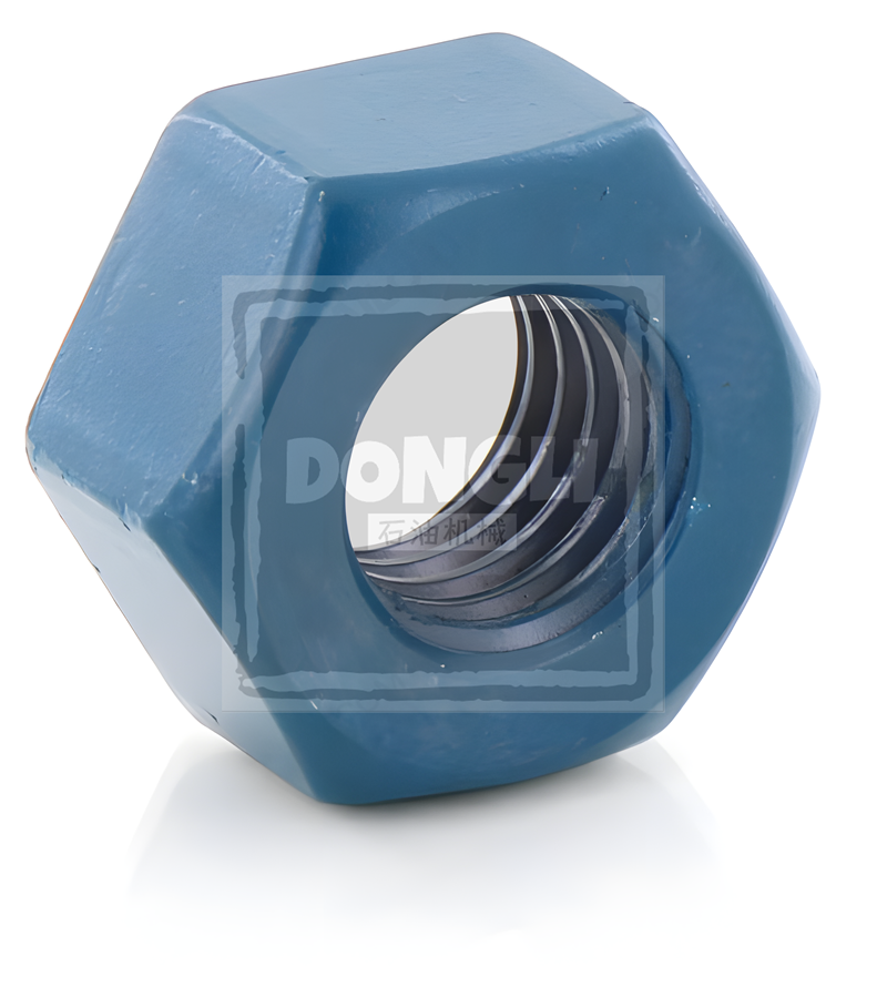 Valve Cover Nut for FMC BEAN Series, manufactured from ASTM A193 B7 chromium-molybdenum alloy steel with 1/2"-13UNC thread, Dacromet coating (ASTM B695 SC4), tensile strength ≥105ksi, API 7K compliant for mud pump fluid ends, 60% enhanced corrosion resistance, compatible with L11/L16 high-pressure sealing systems.