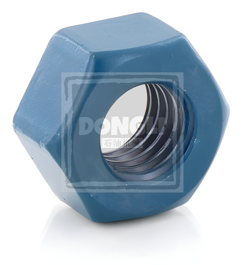 Valve Cover Nut for FMC BEAN Series, manufactured from ASTM A193 B7 chromium-molybdenum alloy steel with 1/2"-13UNC thread, Dacromet coating (ASTM B695 SC4), tensile strength ≥105ksi, API 7K compliant for mud pump fluid ends, 60% enhanced corrosion resistance, compatible with L11/L16 high-pressure sealing systems.