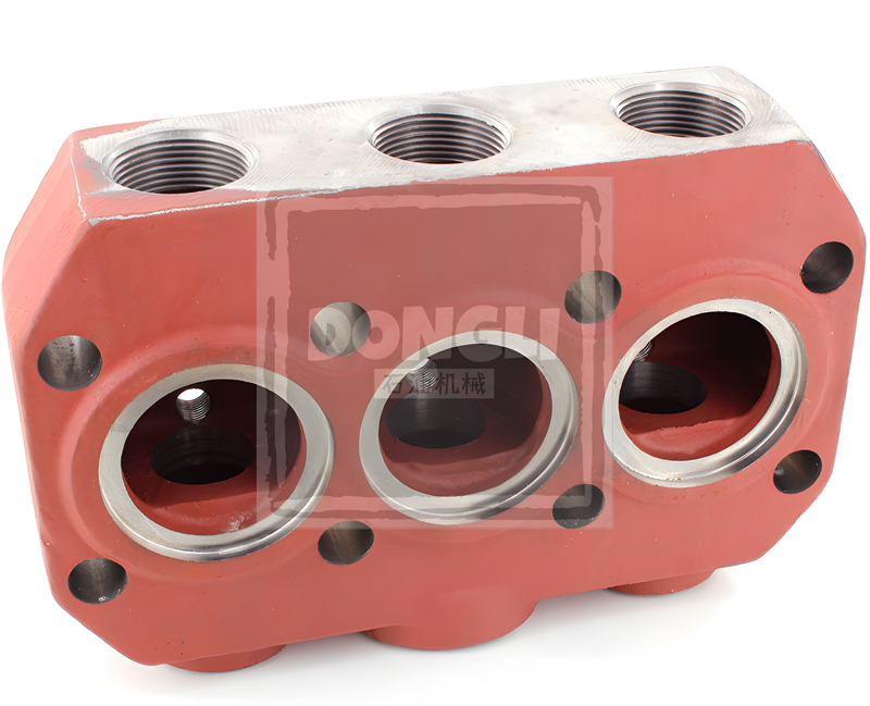 Valve Chamber for FMC Bean L06 Series (SKU 5266484), forged from ASTM A352 LCB low-temperature steel casting (impact energy ≥18J@-46°C), precision-cast + stress-relieved, API 6A mud pump compatible, NACE MR0175 compliant, corrosion-resistant, high-pressure dynamic sealing